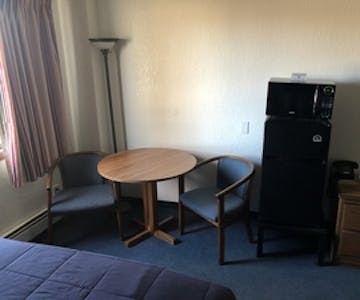 This room comes with 2 Queen beds, Table, Flat Screen T.V. with cable, Fridge & Microwave.